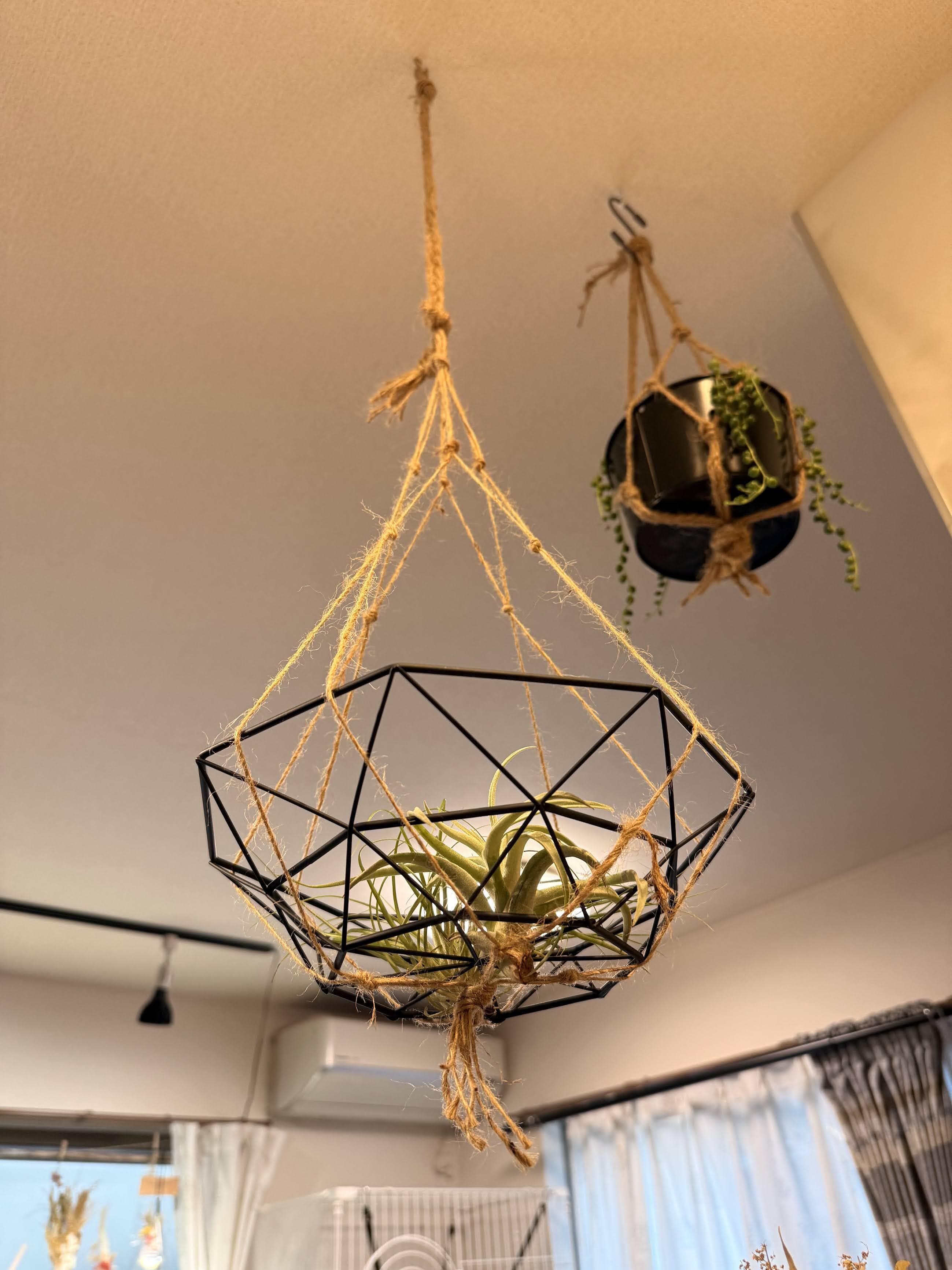 これらは吊るしていますが、100円ショップで麻紐を買ってきて