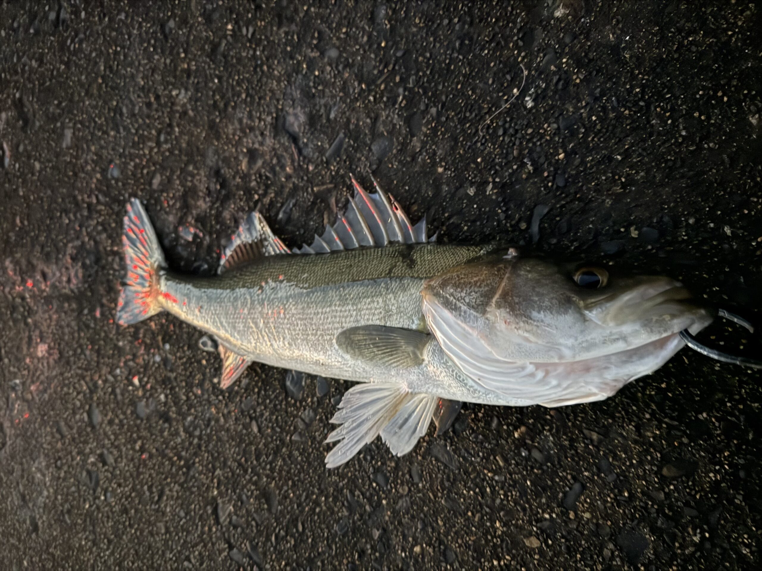 そして日曜日の早朝。夜明けに合わせて釣りに出かけ、無事にスズキを確保。