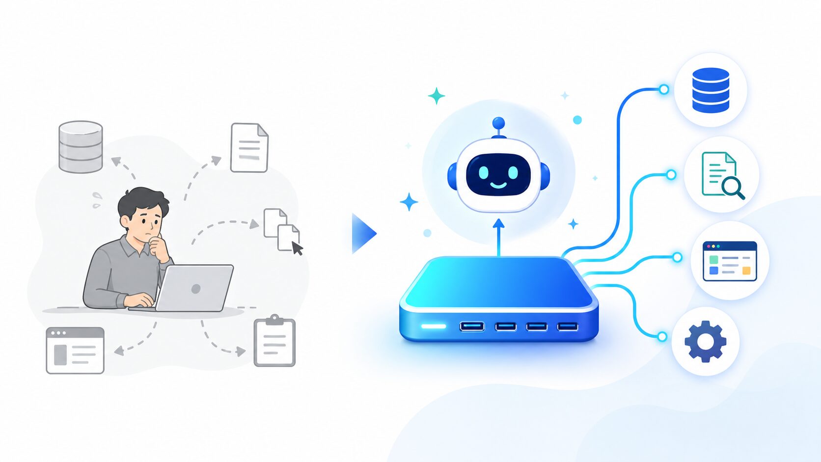 MCPを使うと、AI自身が「必要なときに」「必要な情報を」取りに行けるようになります。